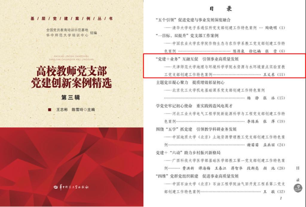 yL23411永利官网登录水资源与水环境重点实验室教工党支部长期重视“党建+业务”互融互促工作,支部书记王义东工作室2022年获批天津市高校“双带头人”教师党支部书记工作室,经过两年精心培育建设,今年顺利通过天津市第二批“双带头人”教师党支部书记工作室验收;创建案例入选《全国高校教师党支部党建创新案例精选》,被《学习强国》等官方媒体报道,并受邀在天津城建大学等高校宣讲,进行交流推广。